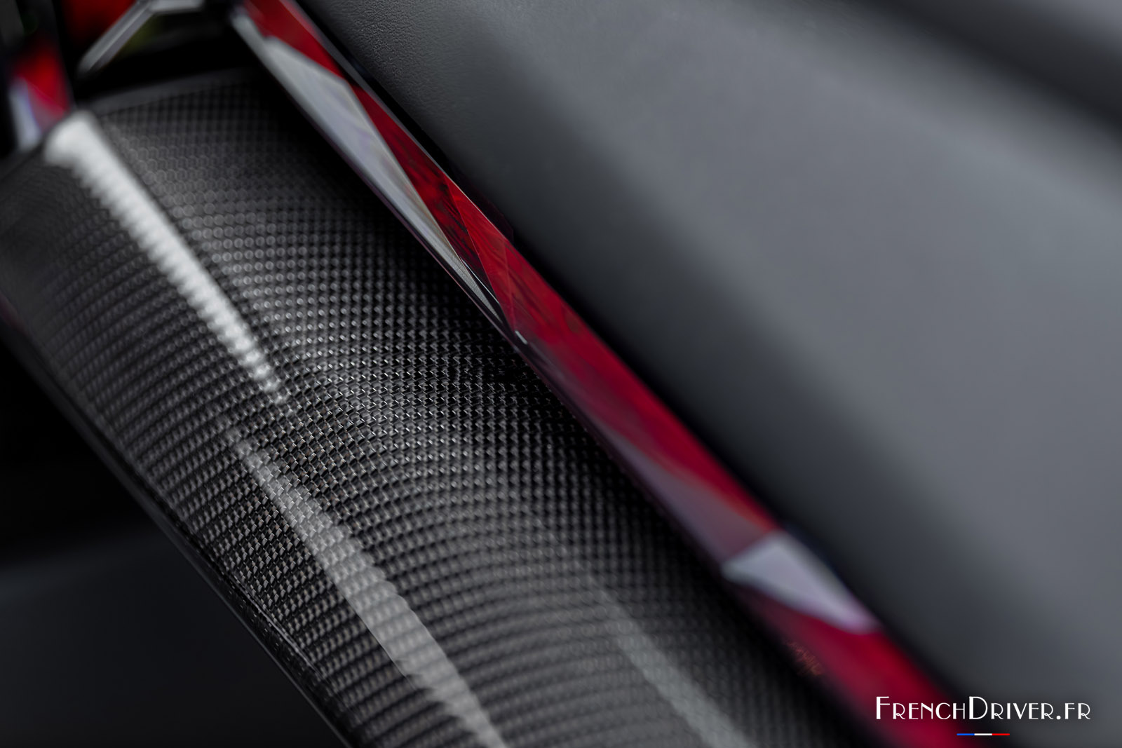 Les sièges baquets et réglables sont plutôt confortables pour une voiture aussi sportive, qui ne doit évidemment pas oublier son appétence à voyager. Le maintien au niveau des épaules et des hanches est excellent, même en conduite dynamique, où on ne sent jamais trimballer de part et d’autre en subissant les lois de la physique.