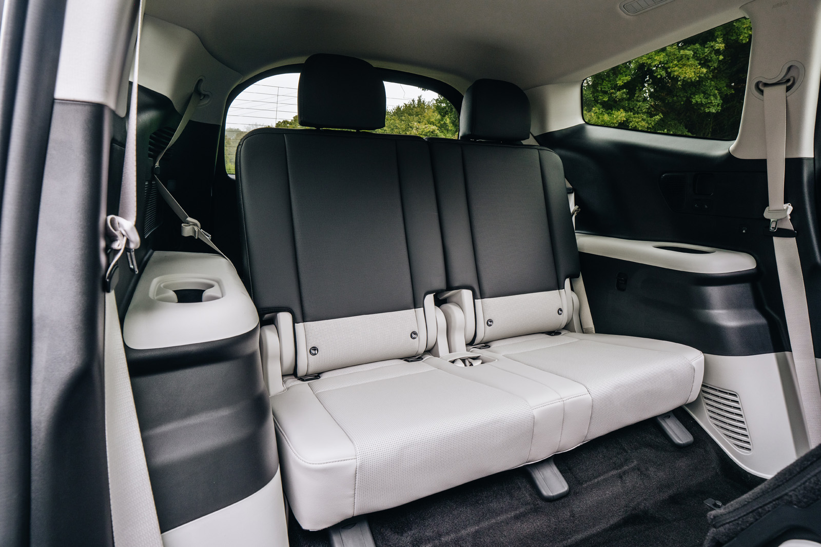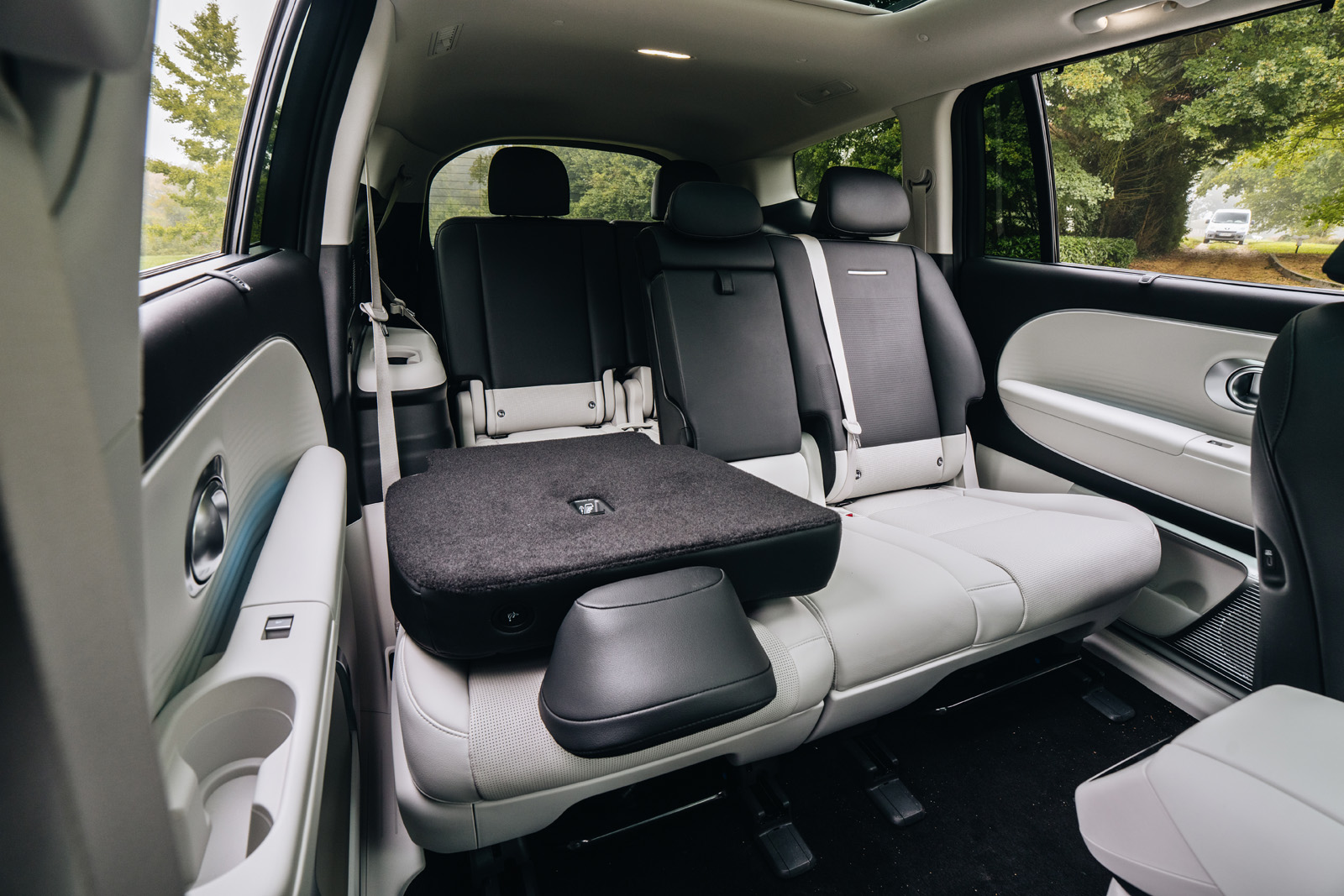 En revanche, côté habitabilité, le Hyundai Ioniq 9 met tout le monde d’accord. Outre la position de conduite très agréable, l’espace à tous les sièges est vraiment généreux. Sur notre modèle d’essai en configuration 7 places, on dispose d’un espace aux genoux très important et d’une banquette coulissante et inclinable. Les sièges de troisième rang n’ont rien d’une punition et des adultes peuvent y voyager plutôt sereinement, grâce à des sièges moelleux et un espace correct.