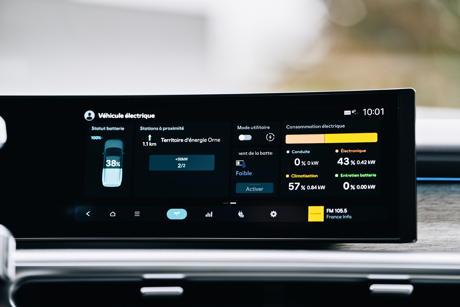 Une cavalerie confortable qui permet au Ioniq 9 de se mouvoir avec un certain dynamisme, notamment lorsqu’on active le mode Sport qui libère tous les chevaux. Hyundai annonce un 0 à 100 km/h en 6,7 secondes, qui n’est sans doute pas loin de la réalité. Performant et silencieux grâce à son acoustique renforcée, le coréen confirme l’importance de l’aérodynamisme en matière d’efficience énergétique. Malgré son poids (2 657 kg en version HTRAC), il nous a gratifiés d’une consommation de 23 kWh/100 km sur un trajet de 371 km avalés à bonne allure, dont un bon tiers sur autoroute.