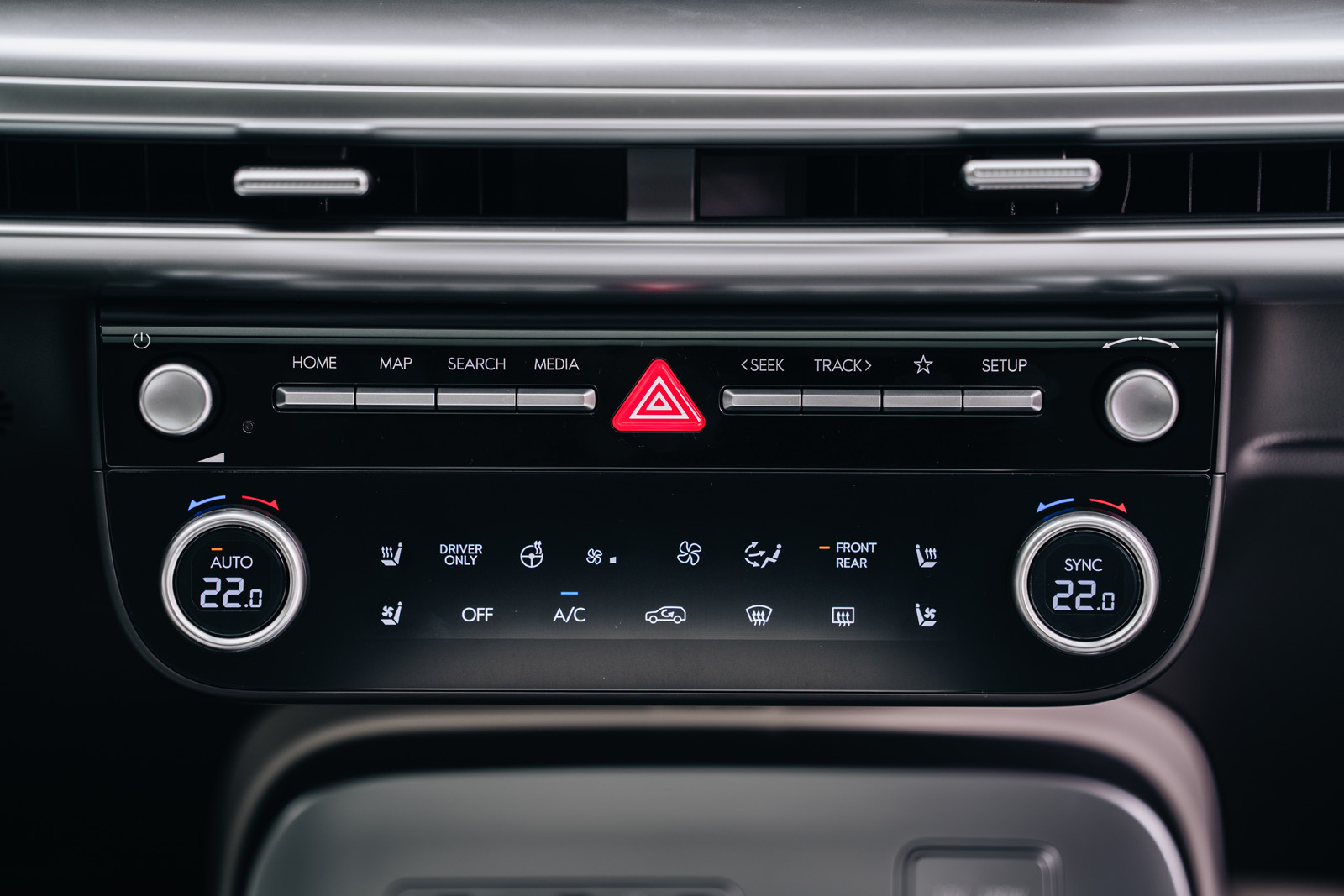En matière d’équipements, le Hyundai Ioniq 9 dispose d’à peu près tous les raffinements du moment, y compris l’adaptateur V2L extérieur (de série dès Executive), d’une prise USB-C 100 W, d’un système de désinfection des appareils de type smartphone, de la caméra 360°, du toit ouvrant panoramique, d’un assistant personnel utilisant l’intelligence artificielle, sans oublier un vitrage acoustique… La liste est tellement longue qu’il faudrait un deuxième article !