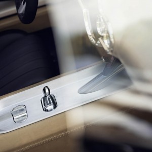 Le tout est particulièrement soigné et respire le luxe, la sportivité et la qualité ! A l’intérieur, l’Union Jack est aussi évoqué sur les portières, avec ces tubes de chrome noir faisant office de poignées de porte.