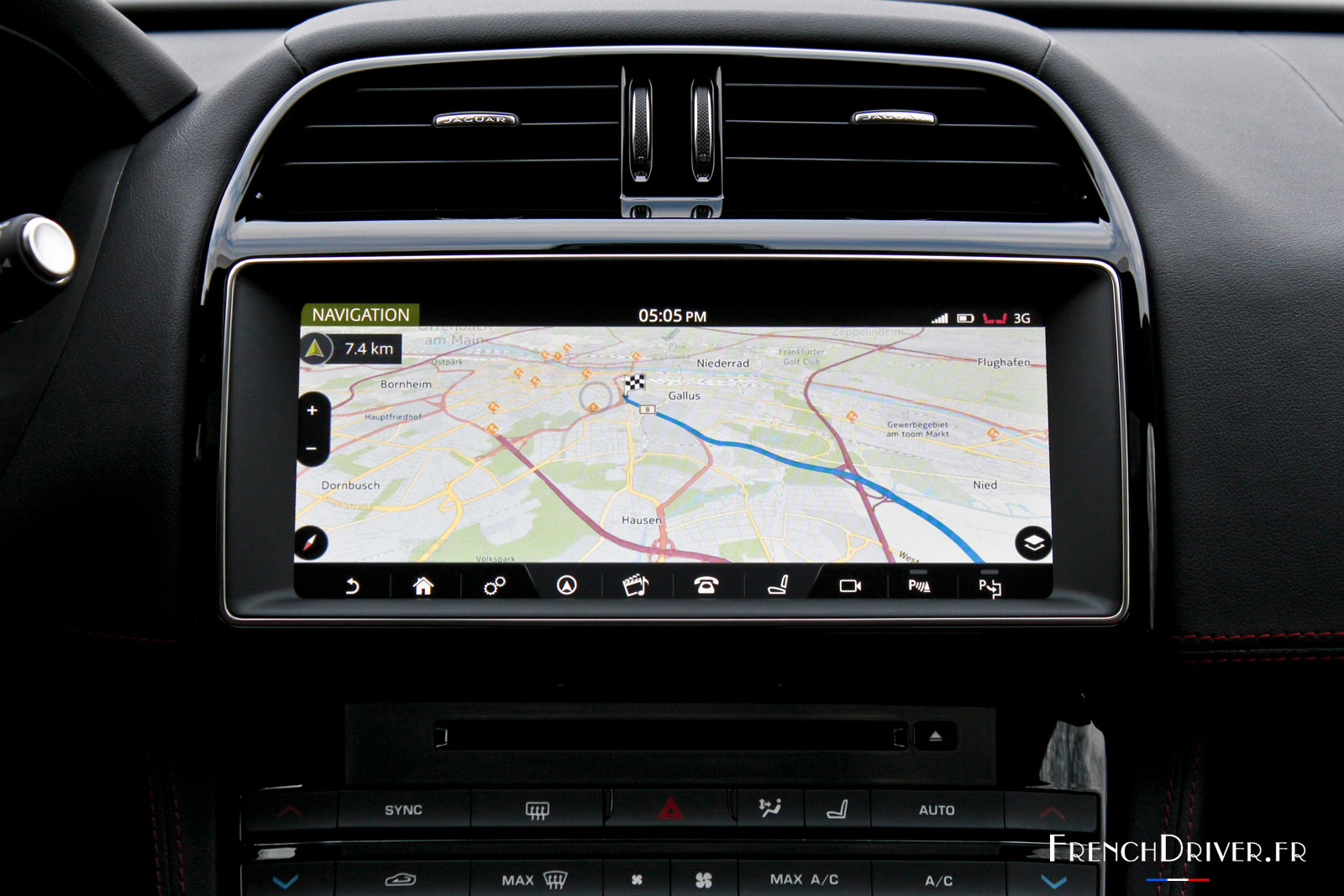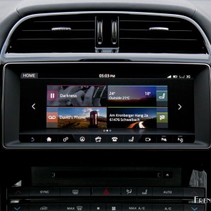 Au centre de la planche de bord, trône l’écran tactile de 10,2 pouces du système InControl Touch Pro, qui est d’ores et déjà présenté par Jaguar comme étant le système multimédia « le plus évolué du monde » ! Il propose notamment une interface personnalisable avec des widgets, une navigation GPS avec cartographie 3D, ou encore un disque SSD de 60 Go embarqué.